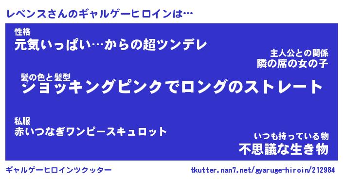 | 男性向けラノベタイトル風あだ名 | 『レペンスの憂鬱』 |