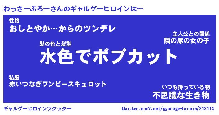 | 女子向けラノベタイトル風あだ名 | 『(仮)わっさーぶろーのやんごとなき事情』 |