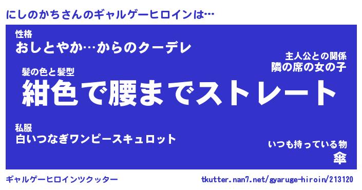 | 男性向けラノベタイトル風あだ名 | 『ニシノカチアートオンライン』 |