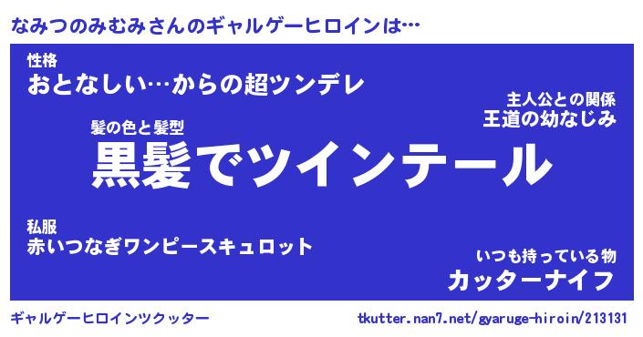 | 男性向けラノベタイトル風あだ名 | 『なみつのみむみの憂鬱』 |
