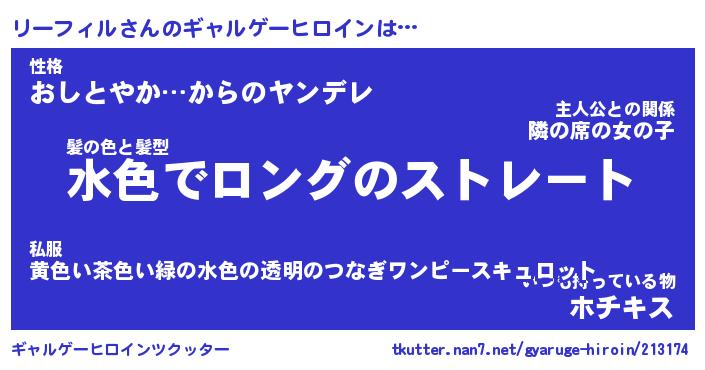 | 男性向けラノベタイトル風あだ名 | 『リーフィルの憂鬱』 |