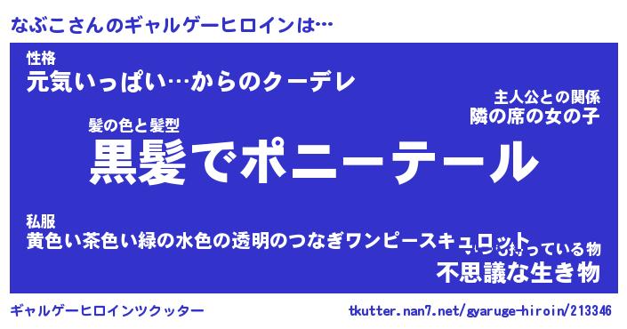 | ヘコむあだ名 | 『なぶにゅー』『豆乳』『なぶっ子』 |