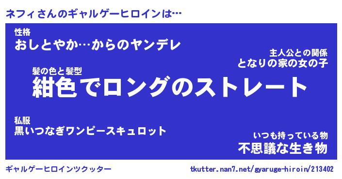 | ファンタジー風あだ名 | 『ネフフェル』『エターナルネフィー』 |
