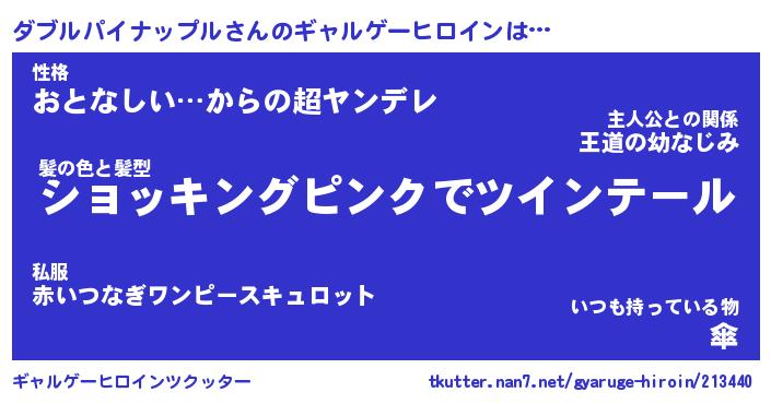 | 女子向けラノベタイトル風あだ名 | 『(仮)ダブルパイナップルのやんごとなき事情』 |