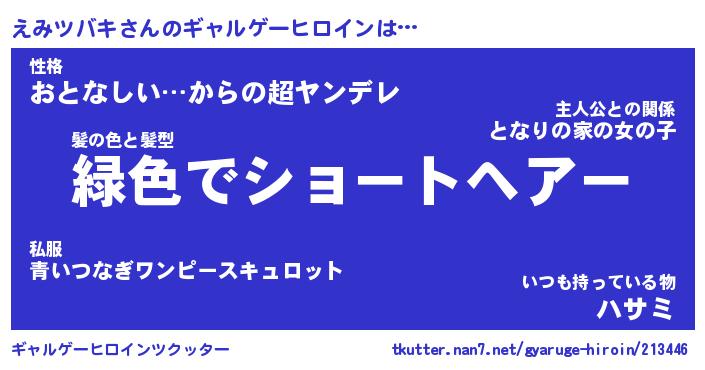 | 男性向けラノベタイトル風あだ名 | 『エミツバキアートオンライン』 |