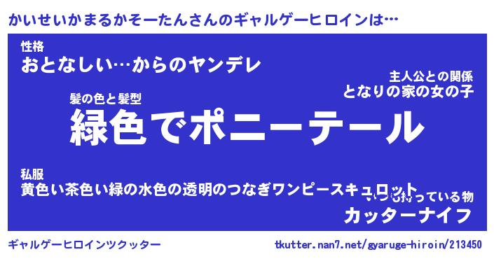 | 肩書あだ名 | 『かいせいかまるかそーたん御曹司』 |