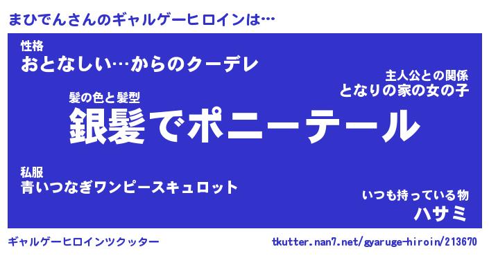 | ファンタジー風あだ名 | 『マヒフェル』『エターナルマヒデンー』 |