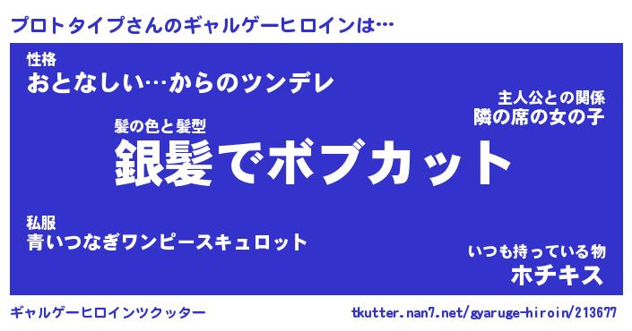 | 男性向けラノベタイトル風あだ名 | 『プロトタイプの憂鬱』 |