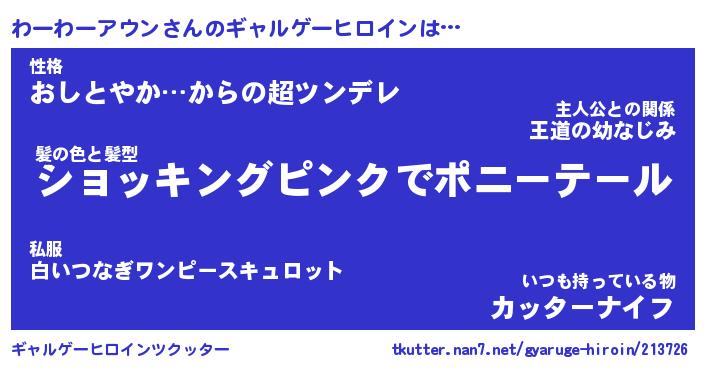 | 女子向けラノベタイトル風あだ名 | 『(仮)わーわーアウンのやんごとなき事情』 |