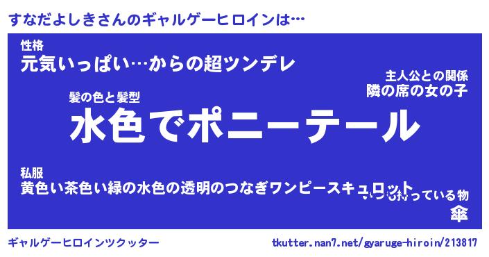 | ヘコむあだ名 | 『すなにー』『豆乳』『すなぷりん』 |