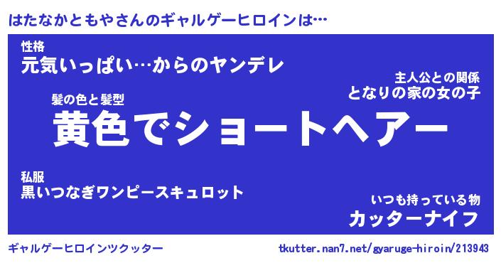 | 女子向けラノベタイトル風あだ名 | 『誰かこのはたなかともやを説明してください! ~契約から始まるウェディング~』 |