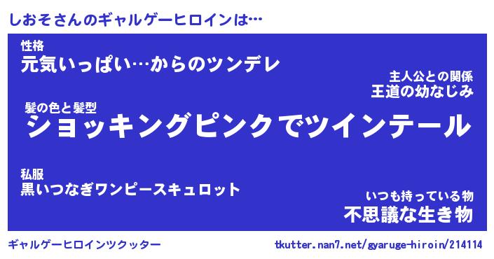 | 男性向けラノベタイトル風あだ名 | 『しおその憂鬱』 |