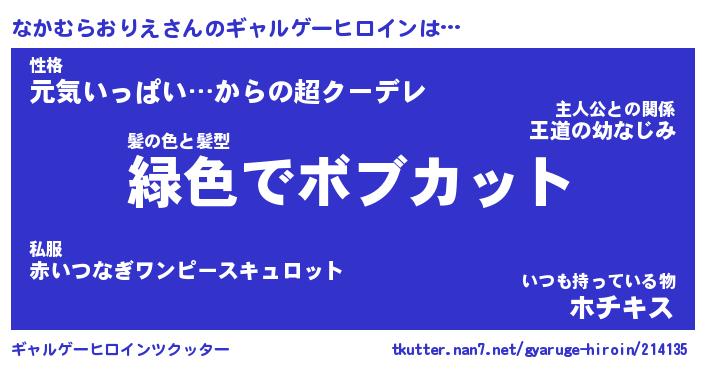 | 肩書あだ名 | 『なかむらおりえ店長』 |