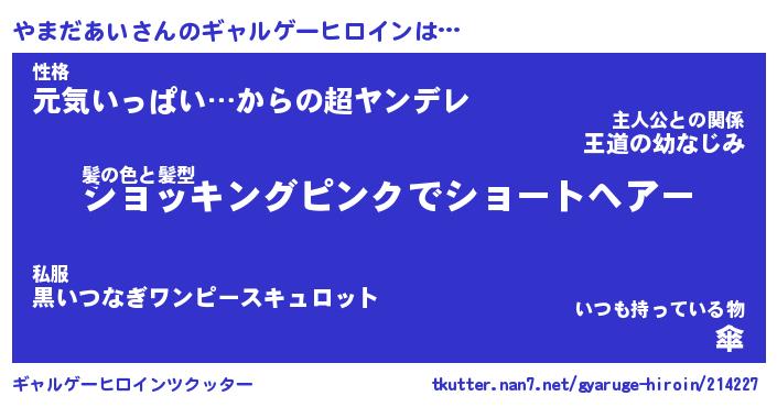| ファンタジー風あだ名 | 『ヤマフェル』『エターナルヤマダアイー』 |