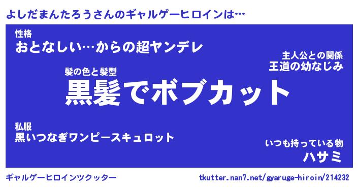 | ポケモン風あだ名 | 『ヨシチュウ』『ヨシダダネ』 |