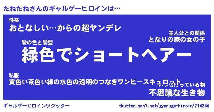 | ファンタジー風あだ名 | 『タネフェル』『エターナルタネタネー』 |