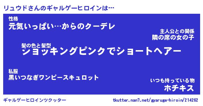 | ファンタジー風あだ名 | 『リュフェル』『エターナルリュウドー』 |