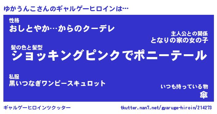 | 女子向けラノベタイトル風あだ名 | 『(仮)ゆかうんこのやんごとなき事情』 |