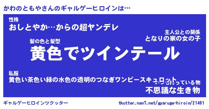 | 女子向けラノベタイトル風あだ名 | 『誰かこのかわのともやを説明してください! ~契約から始まるウェディング~』 |