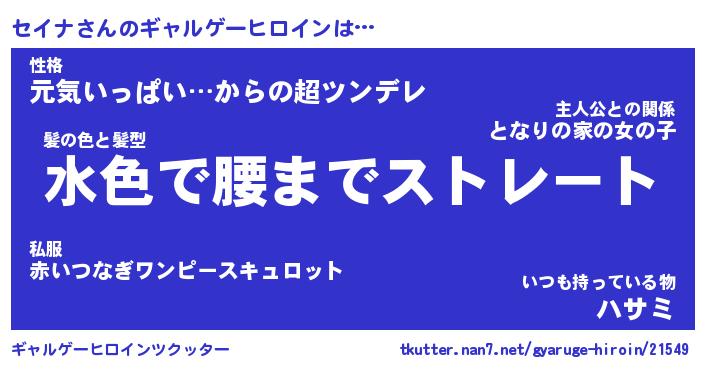 | 女子向けラノベタイトル風あだ名 | 『(仮)セイナのやんごとなき事情』 |
