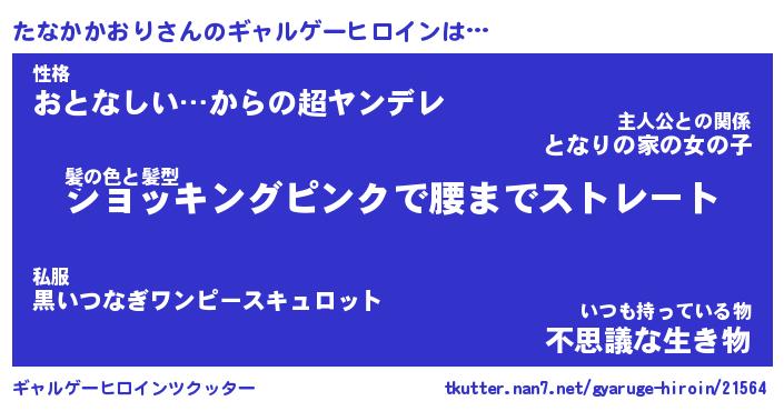 | 男性向けラノベタイトル風あだ名 | 『たなかかおりの憂鬱』 |