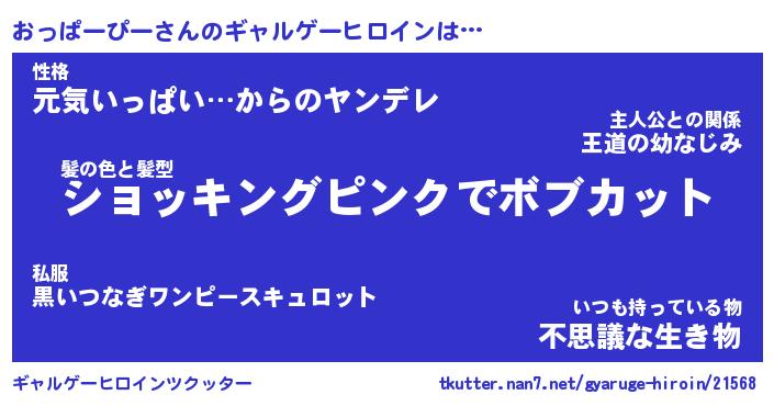 | 男性向けラノベタイトル風あだ名 | 『おっぱーぴーの憂鬱』 |