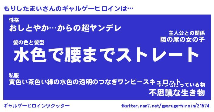 | ヘコむあだ名 | 『もりにー』『牛乳』『もりぷりん』 |