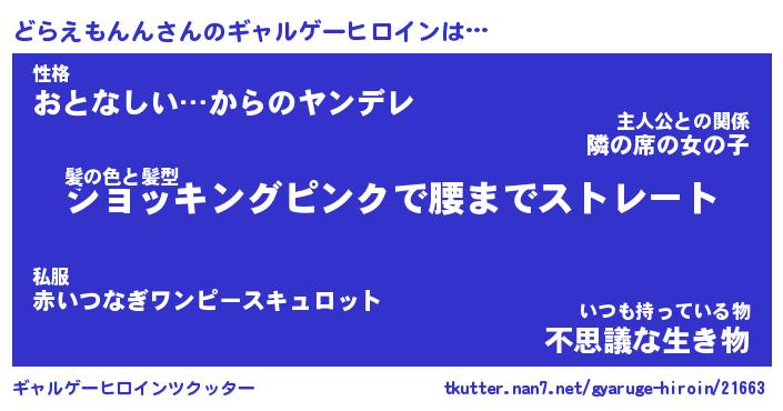 | 女子向けラノベタイトル風あだ名 | 『(仮)どらえもんんのやんごとなき事情』 |
