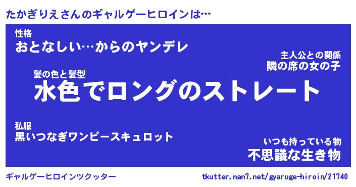 | 女子向けラノベタイトル風あだ名 | 『(仮)たかぎりえのやんごとなき事情』 |