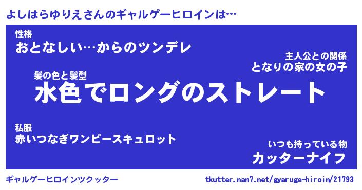 | 女子向けラノベタイトル風あだ名 | 『(仮)よしはらゆりえのやんごとなき事情』 |