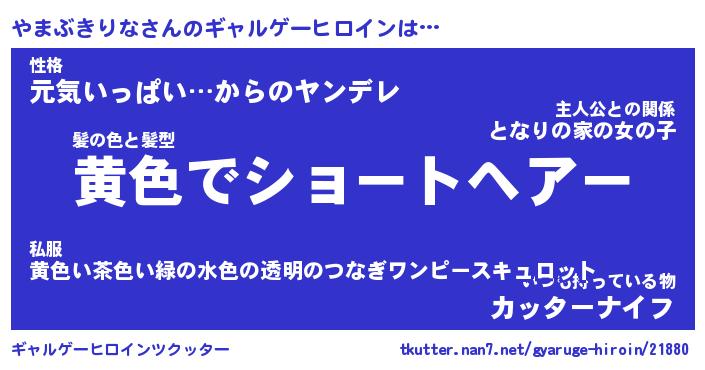 | ヒーロー風カッコイイあだ名 | 『スーパーヤマブキリナ』『暗黒騎士ヤマ』 |