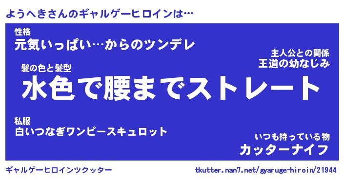 | 女子向けラノベタイトル風あだ名 | 『(仮)ようへきのやんごとなき事情』 |