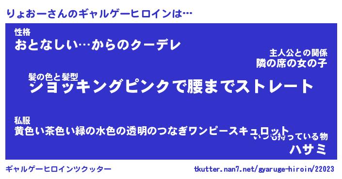 | 意味不明あだ名 | 『ペロリンりょおー』『永久保存りょおー』 |