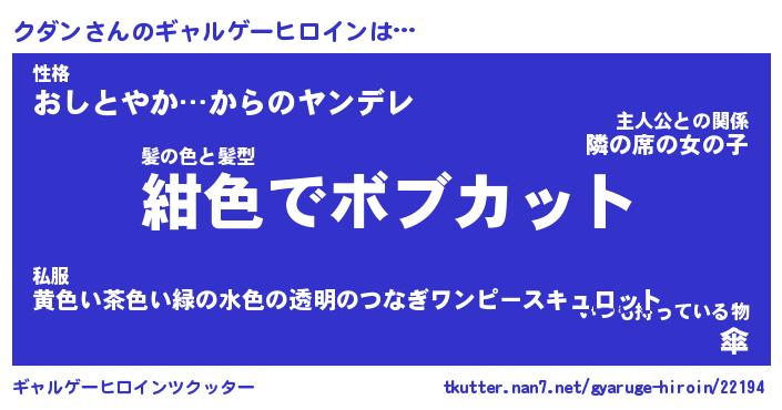 | ファンタジー風あだ名 | 『クダフェル』『エターナルクダンー』 |
