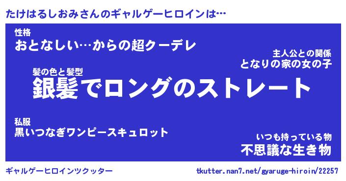 | 男性向けラノベタイトル風あだ名 | 『たけはるしおみの憂鬱』 |