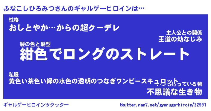 | 女子向けラノベタイトル風あだ名 | 『誰かこのふなこしひろみつを説明してください! ~契約から始まるウェディング~』 |