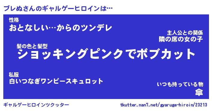 | 男性向けラノベタイトル風あだ名 | 『ブレぬの憂鬱』 |
