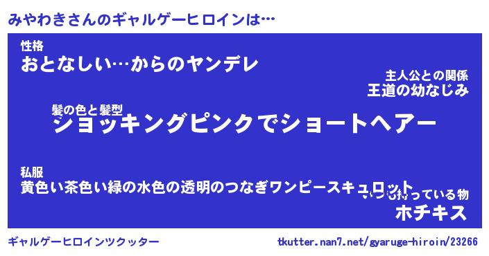 | 女子向けラノベタイトル風あだ名 | 『(仮)みやわきのやんごとなき事情』 |