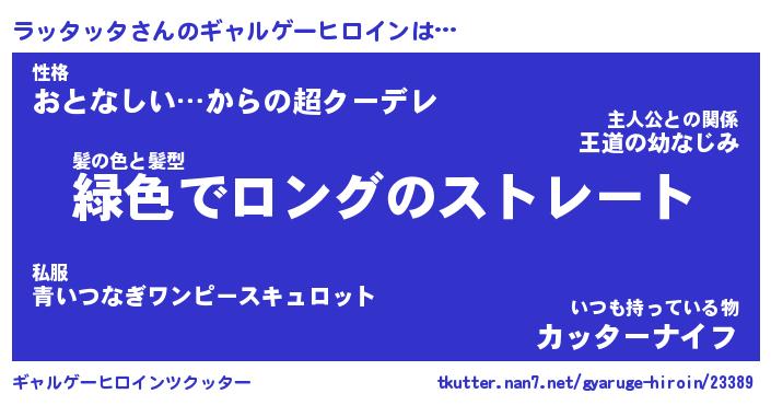 | 男性向けラノベタイトル風あだ名 | 『ラッタッタアートオンライン』 |