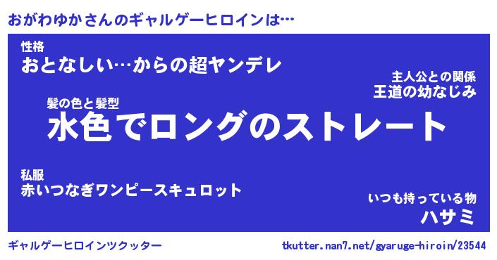 | 男性向けラノベタイトル風あだ名 | 『おがわゆかの憂鬱』 |