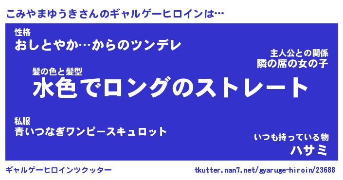 | 女子向けラノベタイトル風あだ名 | 『(仮)こみやまゆうきのやんごとなき事情』 |