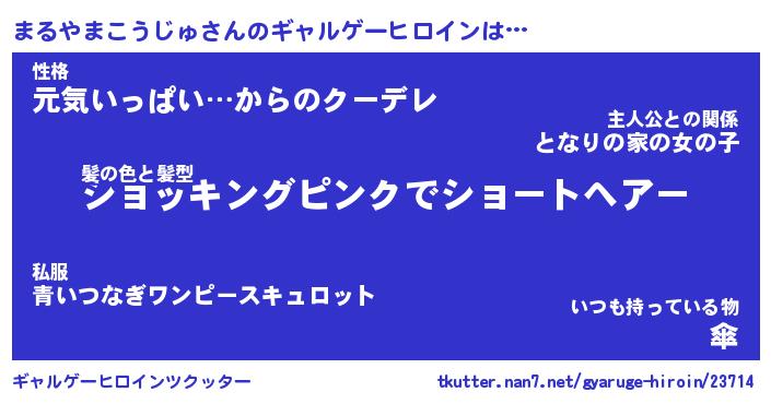 | 女子向けラノベタイトル風あだ名 | 『(仮)まるやまこうじゅのやんごとなき事情』 |