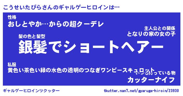 | 女子向けラノベタイトル風あだ名 | 『こうせいたびら姫と円卓の騎士』 |