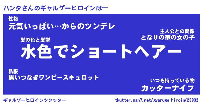 | ファンタジー風あだ名 | 『ハンフェル』『エターナルハンター』 |