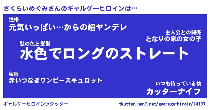 | 男性向けラノベタイトル風あだ名 | 『さくらいめぐみの憂鬱』 |