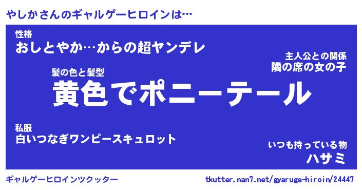 | 意味不明あだ名 | 『ペロリンやしか』『やしかフォーエバー』 |