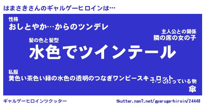 | 男性向けラノベタイトル風あだ名 | 『はまさきの憂鬱』 |