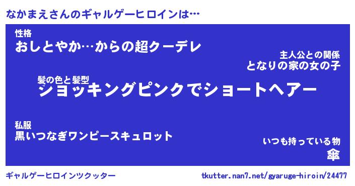 | 女子向けラノベタイトル風あだ名 | 『(仮)なかまえのやんごとなき事情』 |