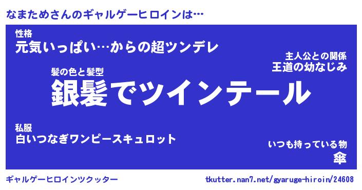 | 女子向けラノベタイトル風あだ名 | 『なまため姫と円卓の騎士』 |