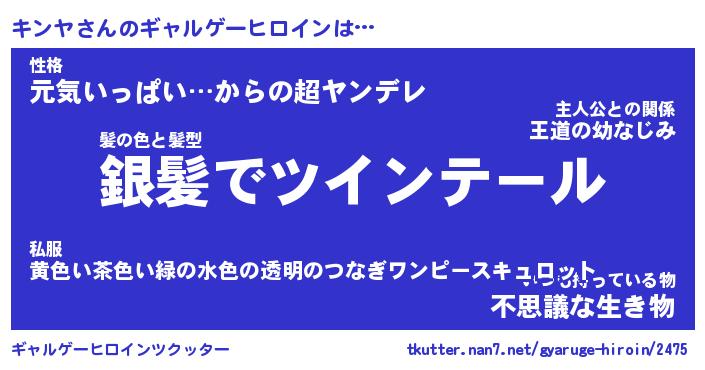 | 男性向けラノベタイトル風あだ名 | 『キンヤの憂鬱』 |